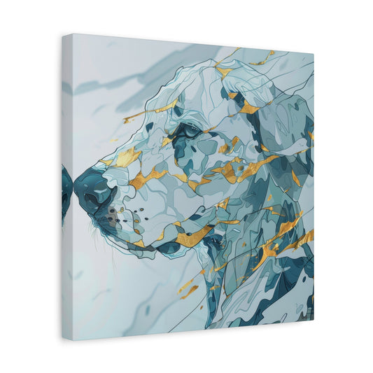 Abstrakter blauer Hund mit goldenen Akzenten - Tierwandkunst