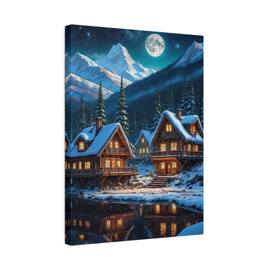 Cabanes dans les montagnes enneigées – Décoration murale en forêt