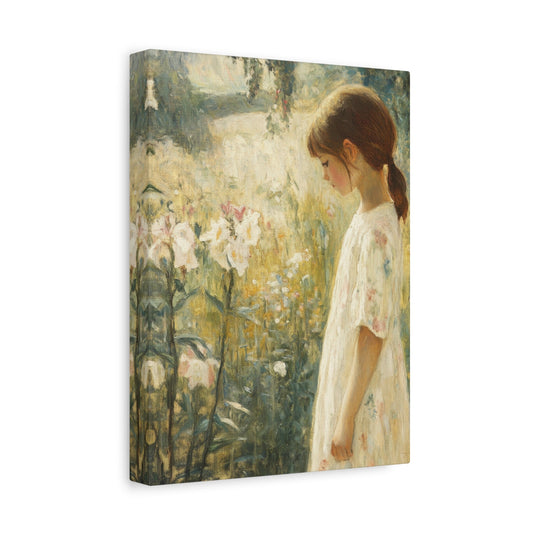Fille contemplative dans un jardin fleuri - Portrait mural