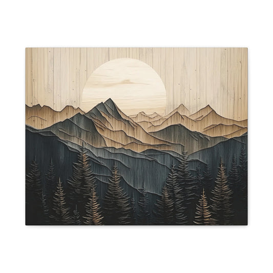 Wooden Mountain Peaks Canvas - Mountain Wall Art