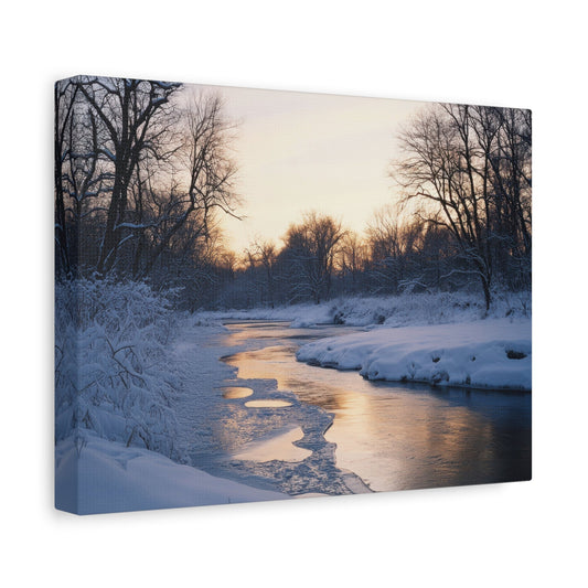 Coucher de soleil d'hiver enneigé au bord de la rivière - Décoration murale de paysage