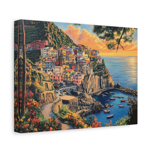 Sérénité d'un village méditerranéen - Décoration murale représentant une scène côtière