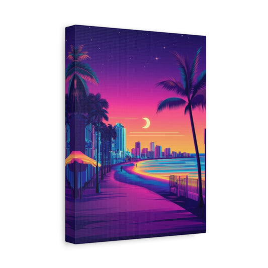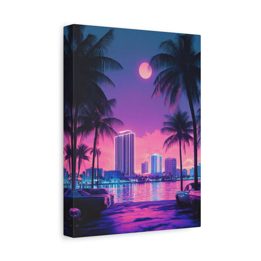 Paysage nocturne rétro au néon de Miami Beach - Décoration murale de la ville