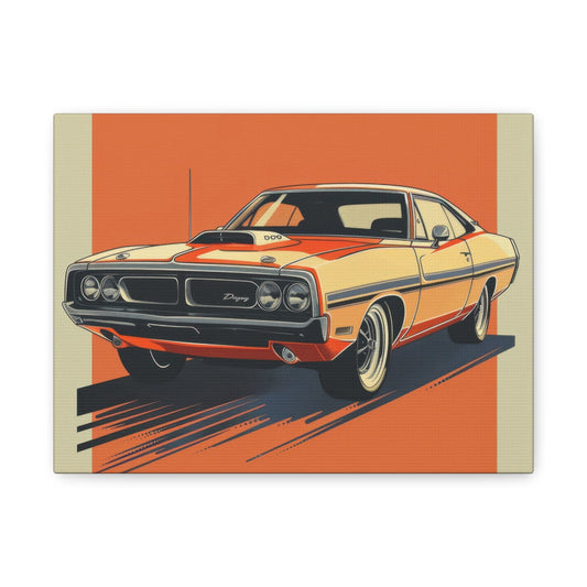 Muscle Car Dodge orange rétro - Décoration murale pour voiture