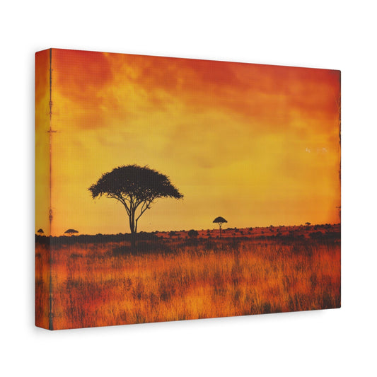 Coucher de soleil africain vintage sur la savane - Décoration murale nature